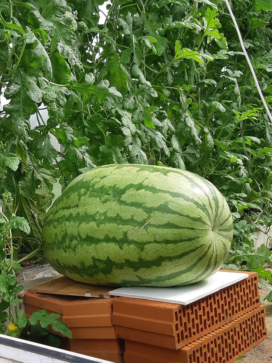 Теперь каждый год Наталья выращивает гигантские овощи и арбузы на своем участке. Правда, в этом году сильный град попортил тыквы. А вот арбузы удались на славу.