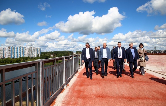 "Реализация проекта ведется в соответствии с установленным графиком. Сейчас идет этап технологических работ по организации финишного покрытия проезжей части моста. На площадке работает достаточное количество специалистов, – отметил Игорь Руденя. – Очень важно также, что активными темпами идут работы на Горбатом мосту. Завершается устройство насыпи и подпорной стенки для нового путепровода. Кроме того, активно ведутся мероприятия на мосту через Октябрьскую железную дорогу".