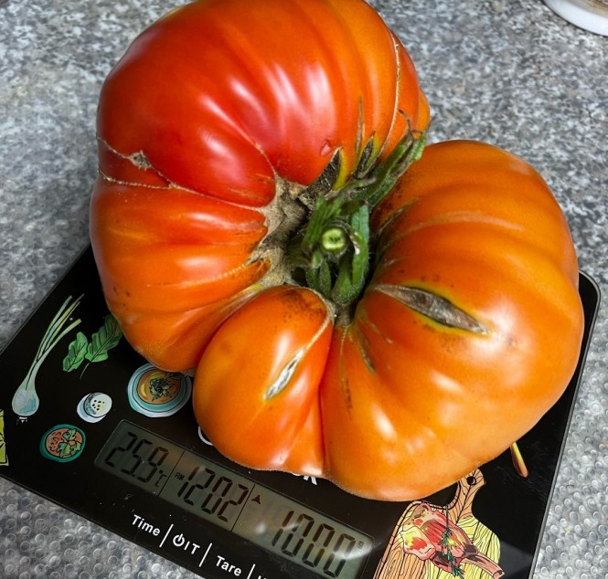 Яна рассказала, что в этом году крупноплодные сорта помидоров дали отличный урожай, некоторые томаты выросли более полукилограмма. Например, помидоры сорта "Гигантский меч" выросли весом более 700 граммов. А помидоры сорта "Великан семейный" вовсе достигли веса в килограмм: огромные и очень вкусные.