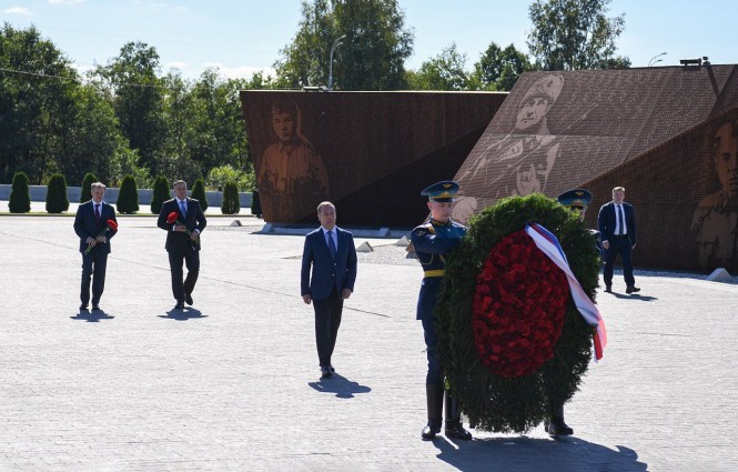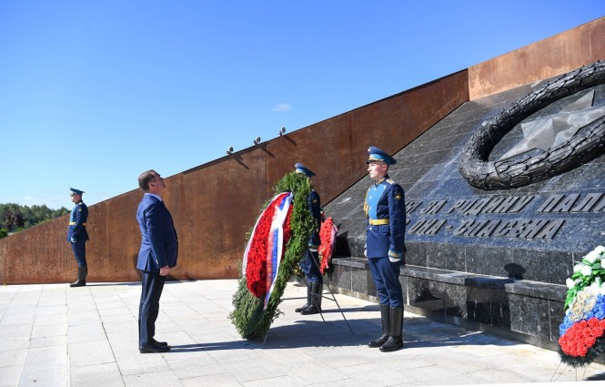 Дмитрий Медведев и Игорь Руденя почтили память павших воинов на Ржевском мемориале Советскому солдату