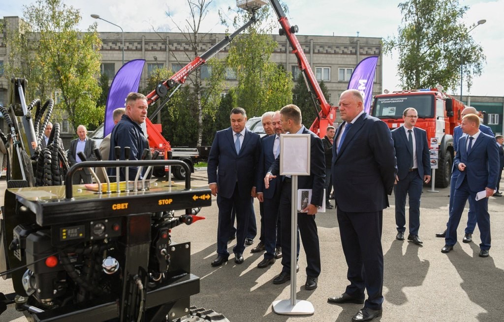 Перед началом работы форума Игорь Руденя, Владимир Васильев и другие участники осмотрели выставку техники тверских производителей – коммунальной, пожарной, строительно-дорожной, медицинской и другого назначения.