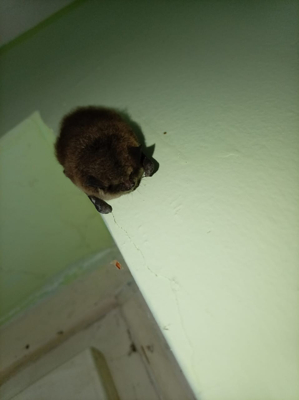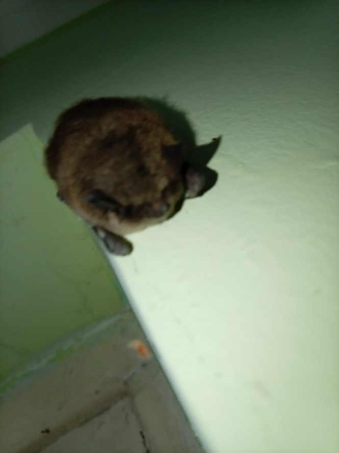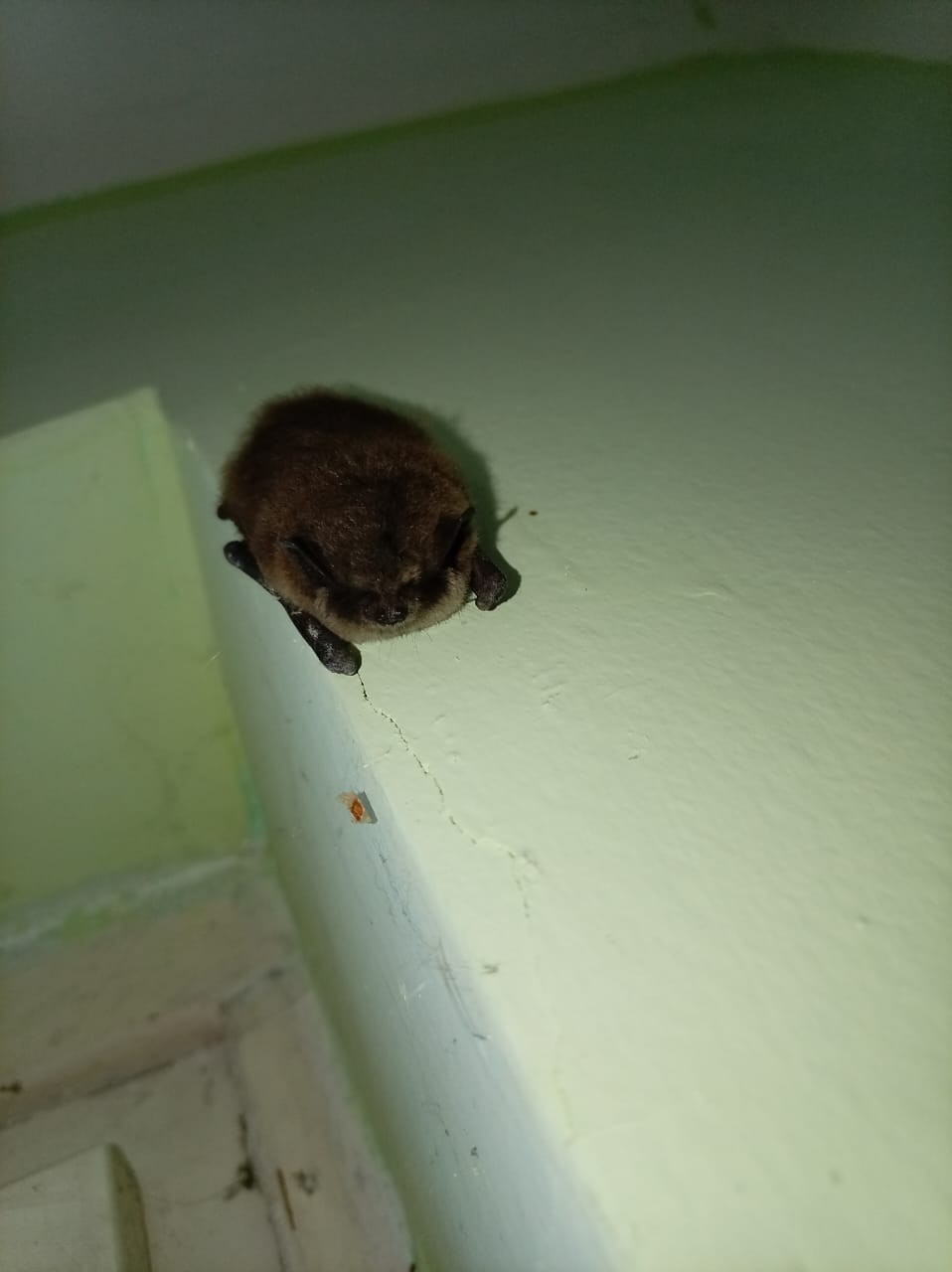Как рассказала ТИА жительница дома Светлана, летучая мышка расположилась на стене у окна. Гостья совсем крохотная, сантиметров семь в длину.