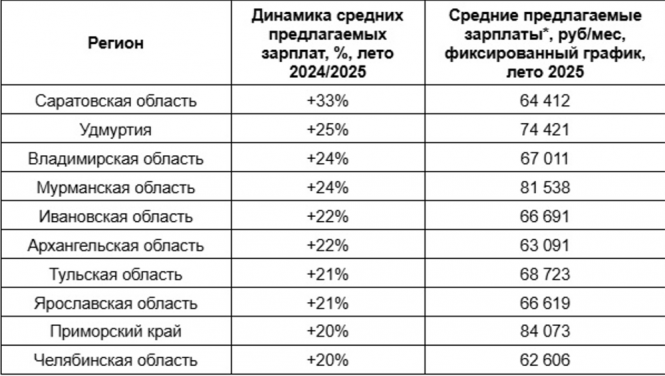 По данным Авито Работы, летом 2025 года по сравнению с аналогичным периодом прошлого года у менеджеров по персоналу сильнее всего выросли зарплатные предложения в Саратовской области — почти на треть (+33%), достигнув в среднем 64 412 руб/мес при фиксированном графике.