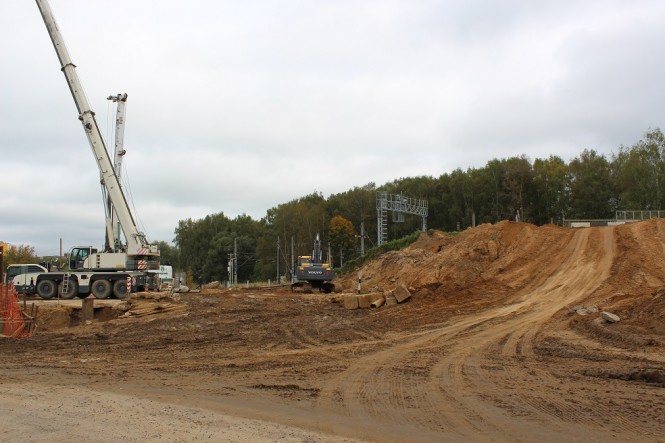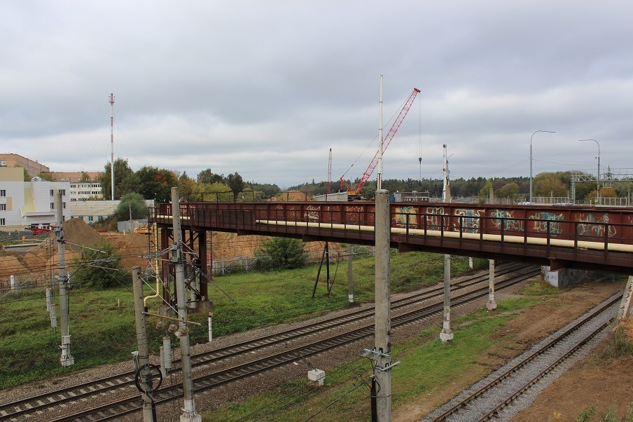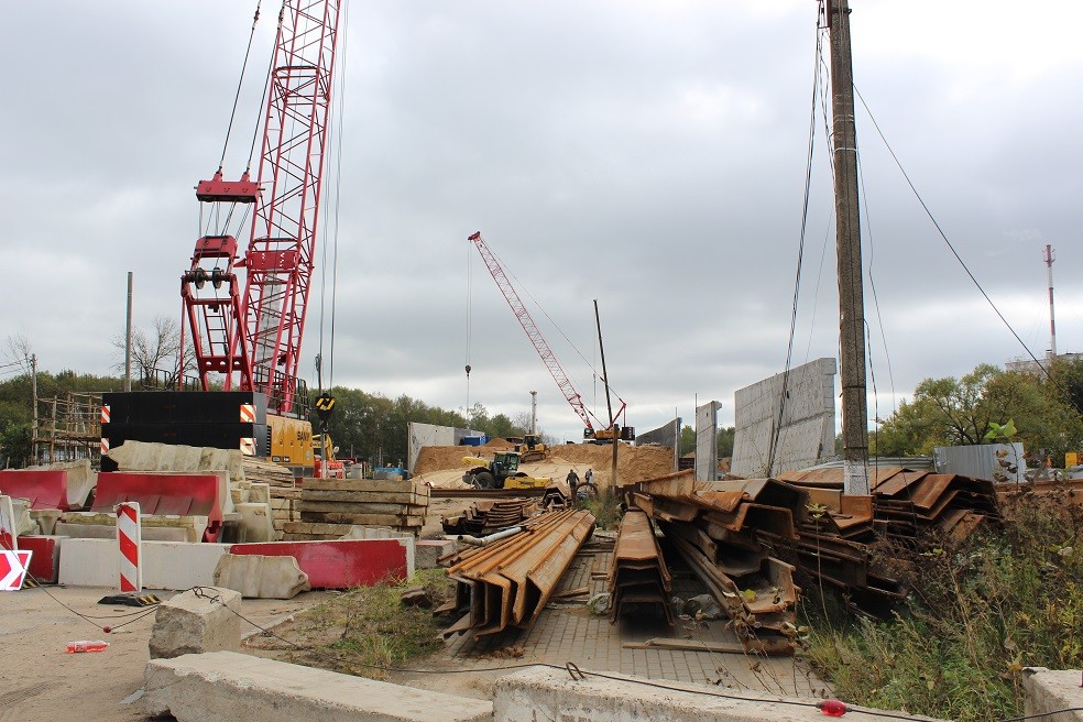 Всего планируется возвести четыре новые опоры для строящегося путепровода, но следующие две будут ставиться только после того, когда будет полностью разобран старый Горбатый мост - та часть, которая находится над железной дорогой.
