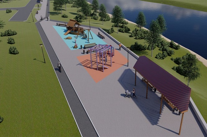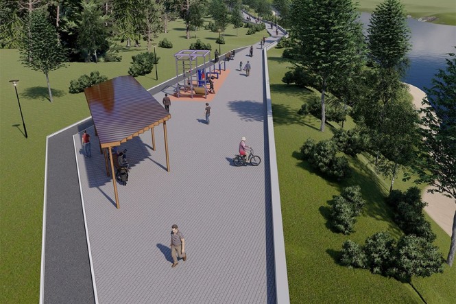 Основной объем работ выполнен, а завершение благоустройства намечено на лето следующего года. Планируется уложить брусчатку, газон и велодорожку, а также смонтировать линию наружного освещения и установить новые фонари.