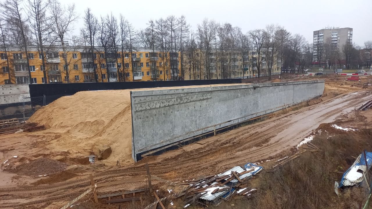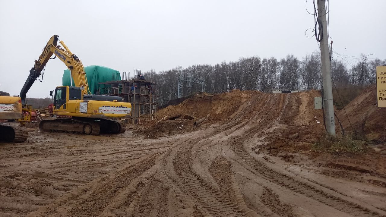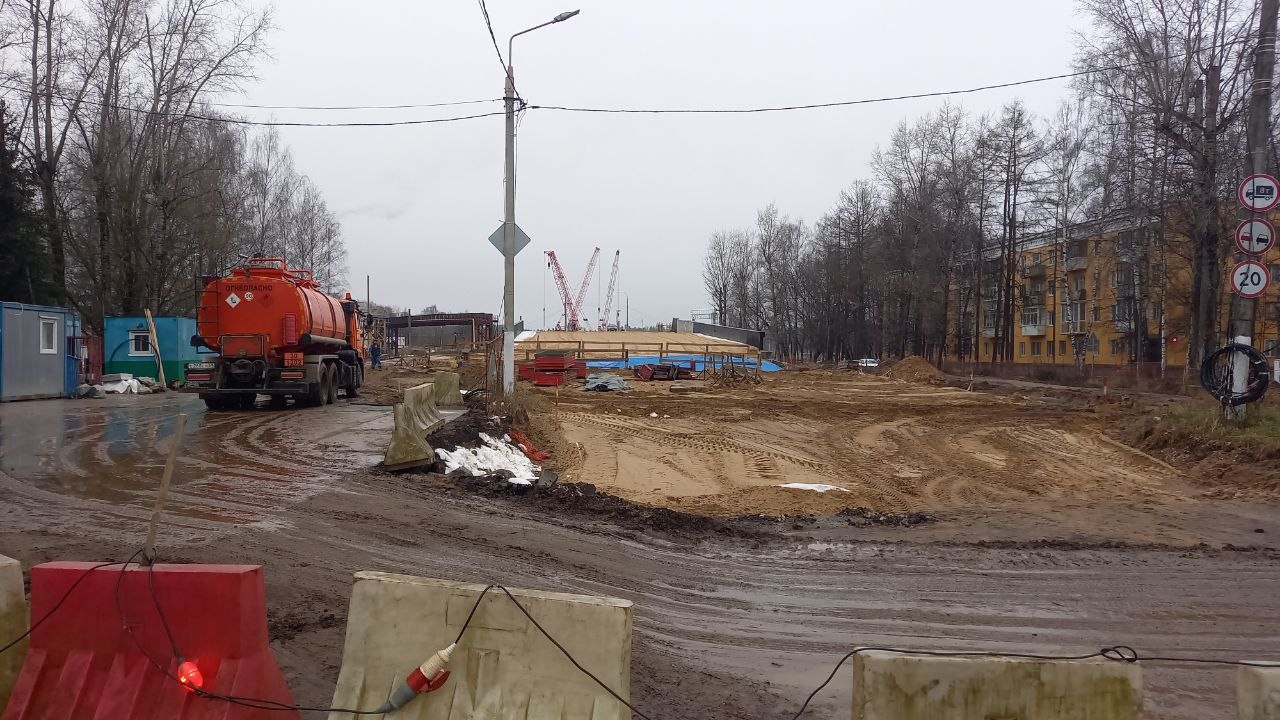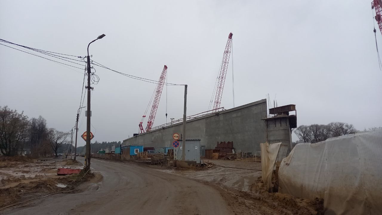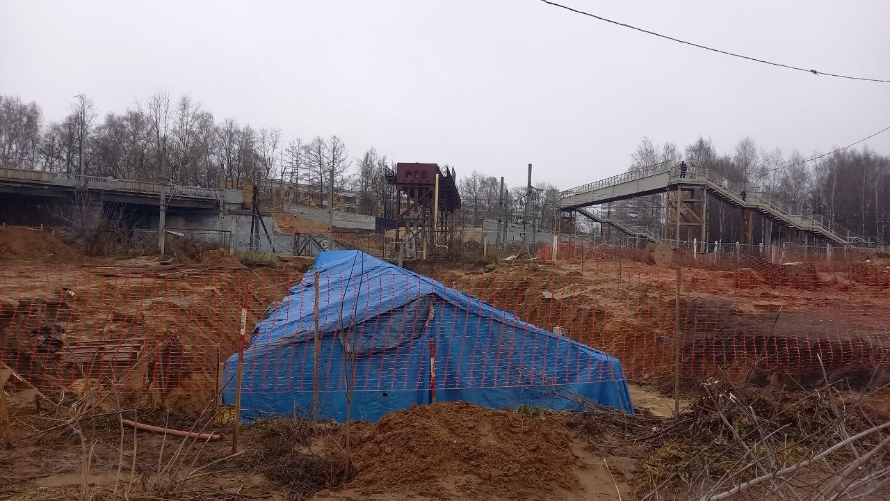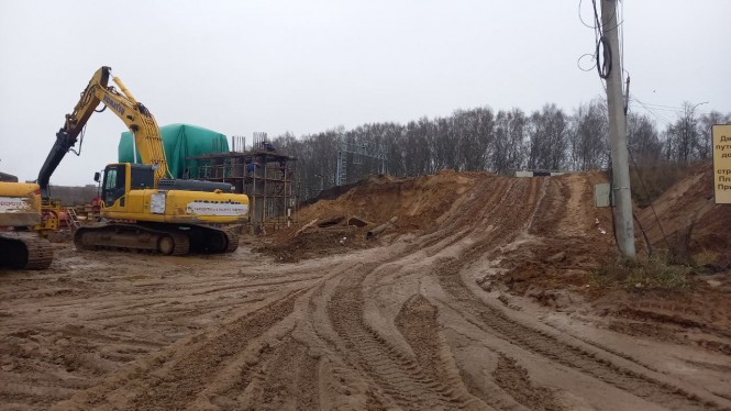 Для нового путепровода сделаны две насыпи – и со стороны Санкт-Петербурга, и со стороны Твери. Также готов стапель – устройство, на которое будет устанавливаться металлическое пролетное строение строящегося путепровода.