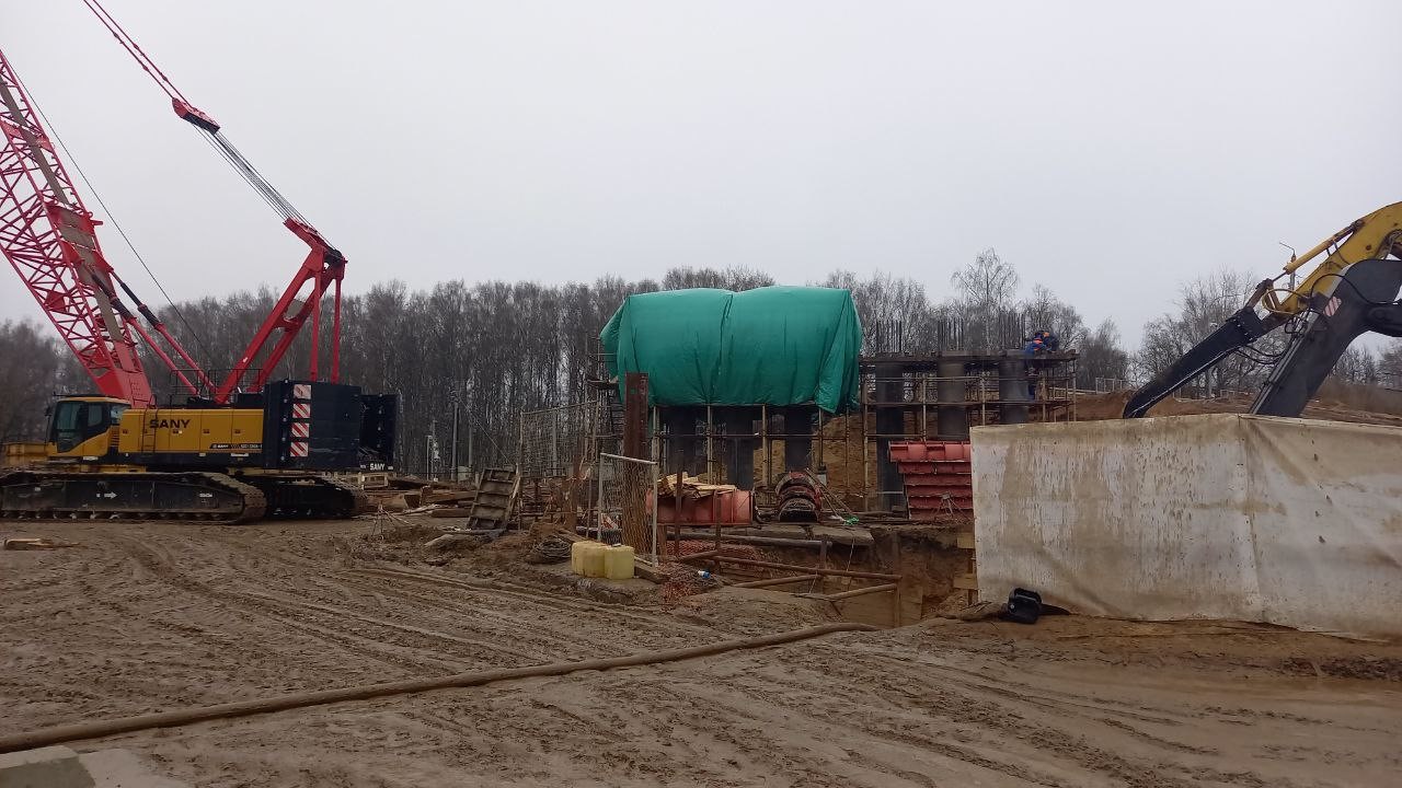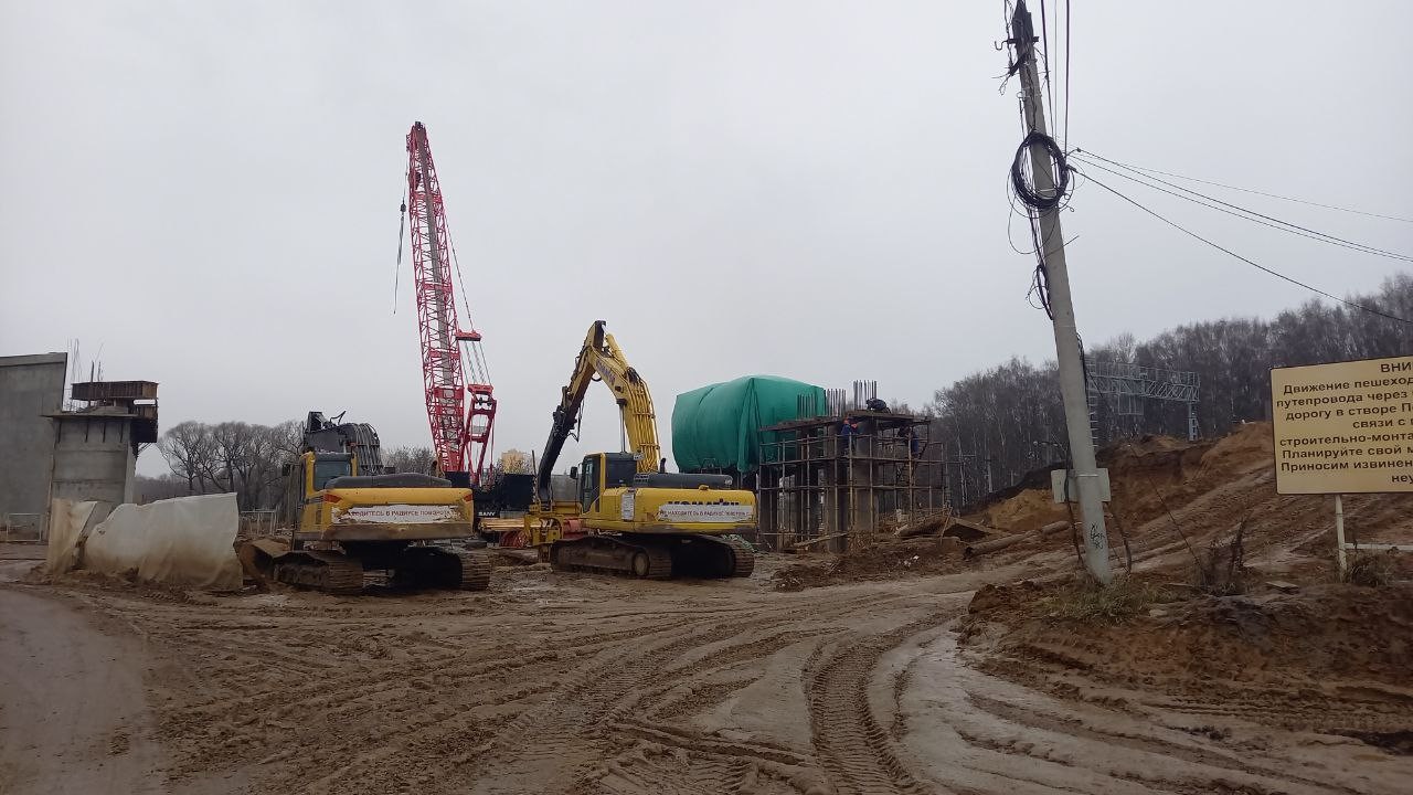 "Когда все четыре опоры будут установлены, начнем надвигать металлическую несущую конструкцию путепровода, которая также частично уже собрана", - пояснили в ДСК.