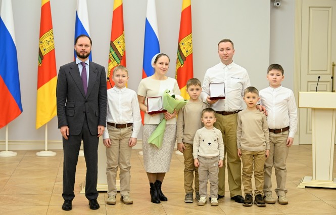 Почетными знаками Тверской области "Слава Матери" и "Слава Отца" награждены супруги Светлана и Дмитрий Веселовы из Твери, воспитывающие семерых детей.
