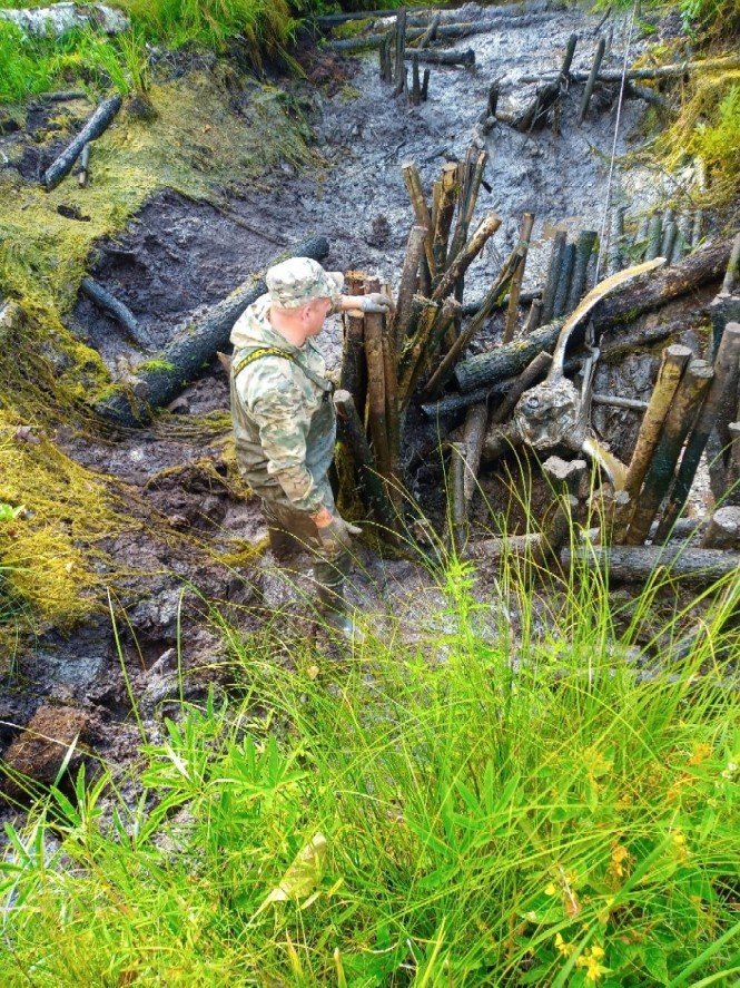 Самолет упал в торфяной грунт, весь ушел в землю и сгорел, рассказал поисковик отряда "Авангард" Семен Марьин.