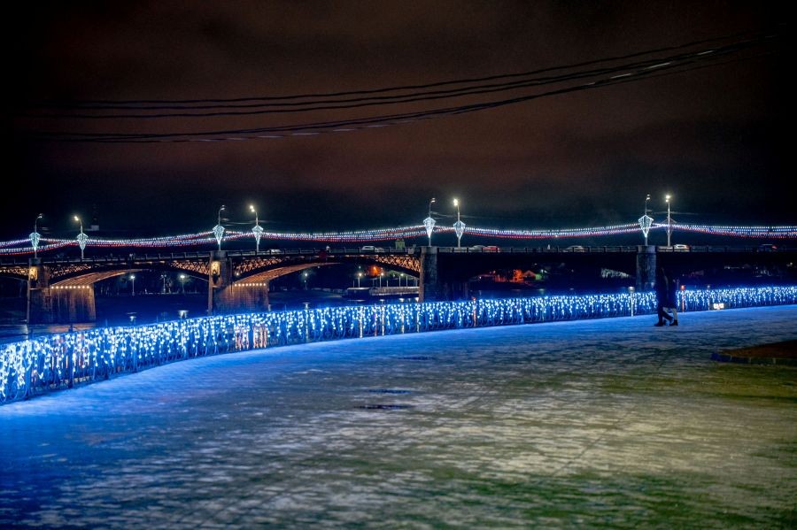 Новогодние ели установлены на улице Туполева у ДК "Затверецкий", в поселках Сахарово и Литвинки, а также в скверах на улицах Артюхиной и Хромова и в поселке ДРСУ. На улице Горького от Комсомольского проспекта до Артиллерийского переулка развесили 64 перетяжки "Бахрома". На набережной Афанасия Никитина от Нового моста до Речного вокзала и от Старого моста до Артиллерийского переулка установили гирлянды. Светодиодные консоли разместили на площади Мира и на Комсомольском проспекте.