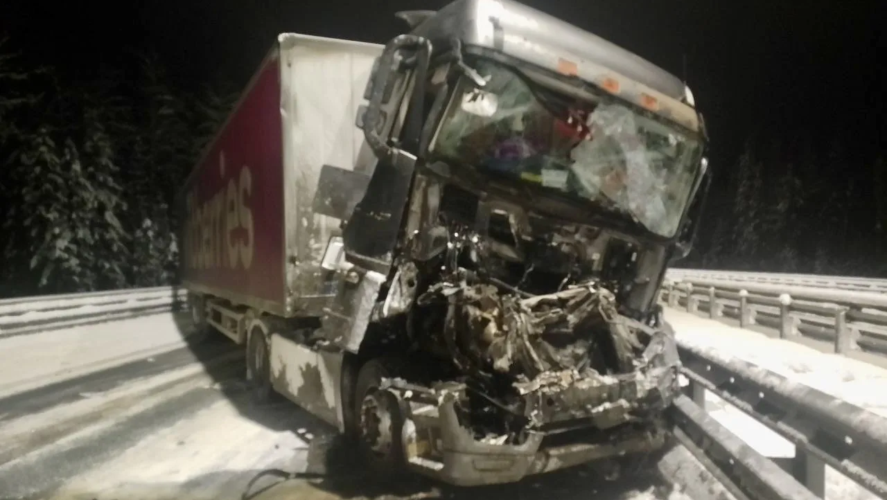 Появилось видео с места аварии с грузовиком на трассе в Тверской области