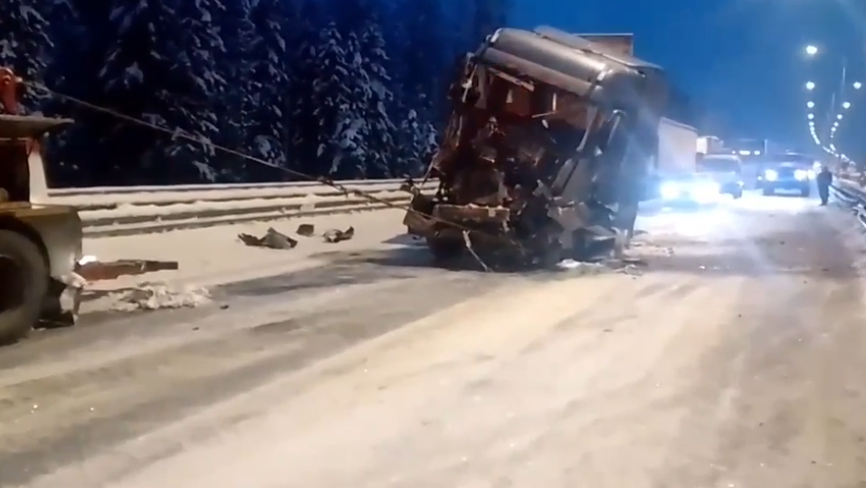 В 8.31 пресс-служба МЧС сообщила, что движение на трассе восстановлено: разбитую фуру оттащили в сторону.