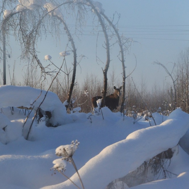 Кстати, лоси - травоядные животные. Зимой они питаются корой деревьев, ветками и даже хвоей.