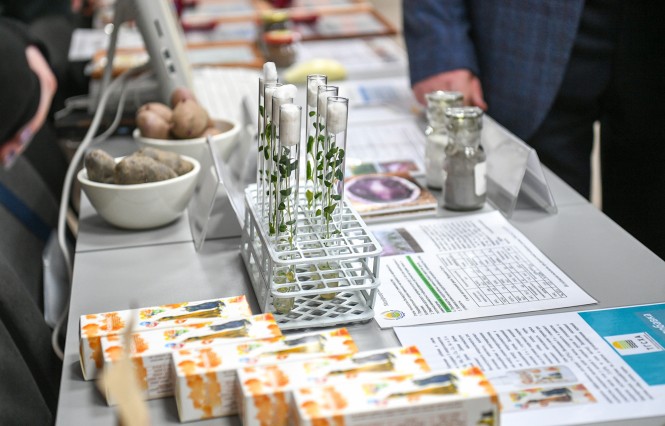 Инновационные разработки в аграрной сфере, направленные на обеспечение продовольственной и биобезопасности, представила Тверская государственная сельскохозяйственная академия. Это средства механизации, которые справляются с залежными землями, модифицированная питательная среда для выращивания картофеля, кормовые добавки для животных, обогащённые витаминами и макро-микроэлементами, пищевая продукция – макаронные изделия и сухари с добавлением витаминизированных комплексов, которые улучшают пищеварение у человека, позволяют повысить иммунную функцию. Среди проектов также - биоэтанол, полученный из борщевика Сосновского.