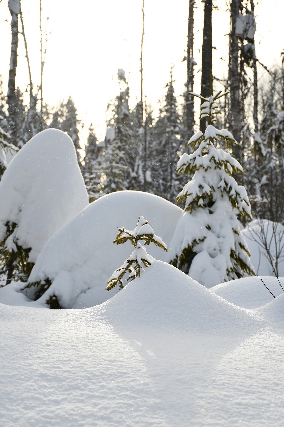 Зима в этом году снега не жалеет, в лесу его как нигде много. Кругом ели – сугробы, сосны - сугробы.