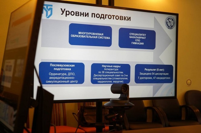 Встречу открыл ректор вуза Александр Сонис, который рассказал ребятам об истории становления одного из старейших медицинских вузов России, факультетах и открытии новой специальности "Медико – профилактическое дело".