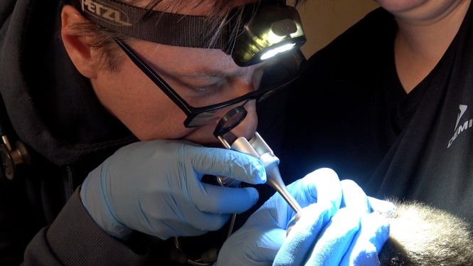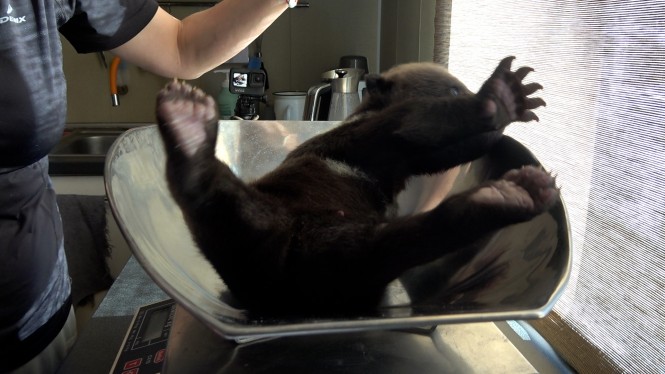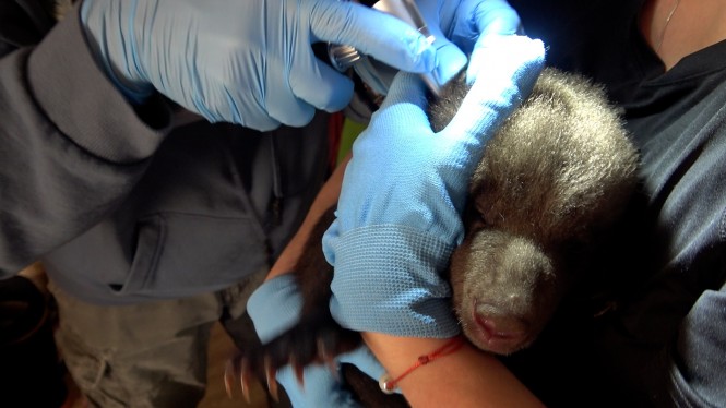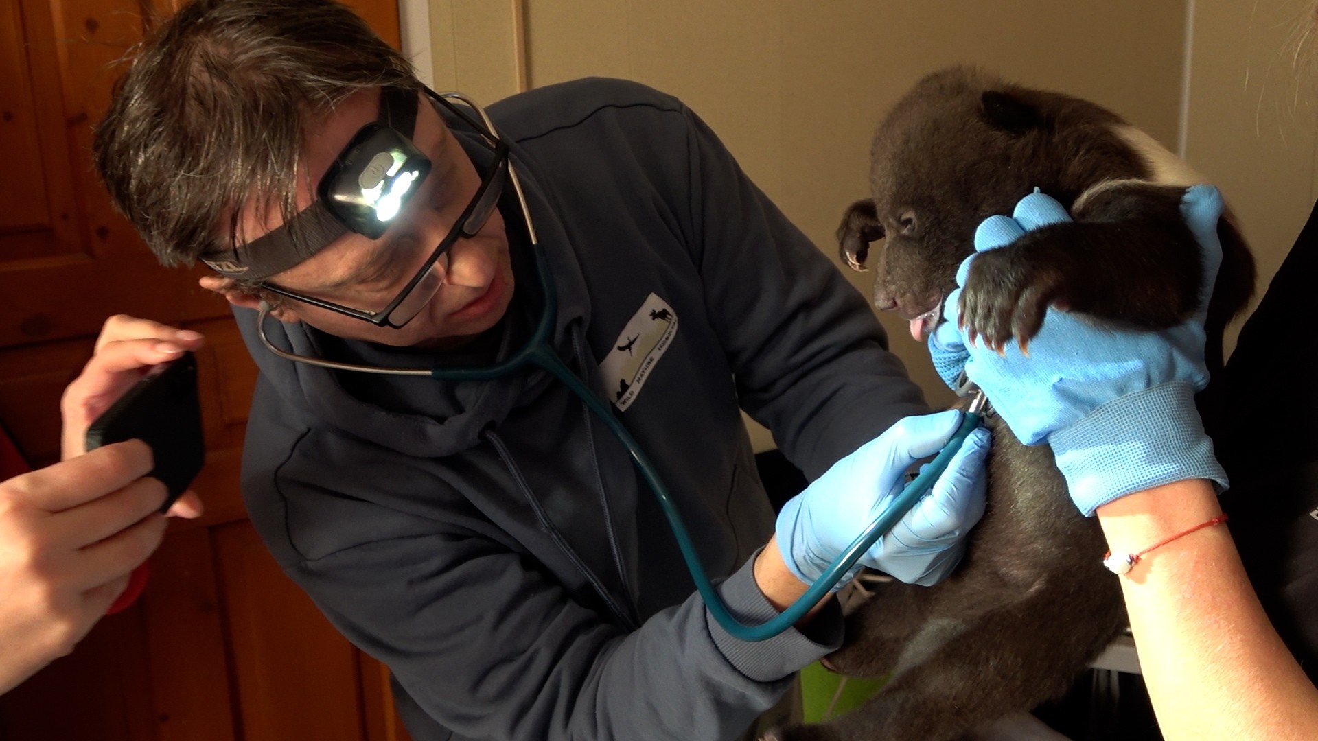 Первенцы этого года прошли ветеринарный осмотр. Мишек осматривал врач Госпиталя дикой природы.