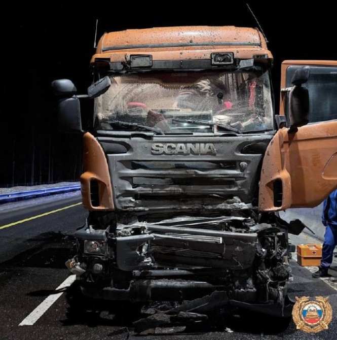 Вчера вечером на 205-м километре скоростной автомагистрали М-11 "Нева" в Калининском округе столкнулись два большегруза.