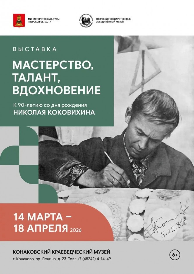Конаковский краеведческий музей 14 марта откроет выставку "Мастерство, талант, вдохновение" (6+), созданную к 90-летию со дня рождения известного художника Конаковского фаянсового завода Николая Коковихина. На выставке будут представлены работы мастера из фондов Конаковского краеведческого музея и собраний местных коллекционеров.