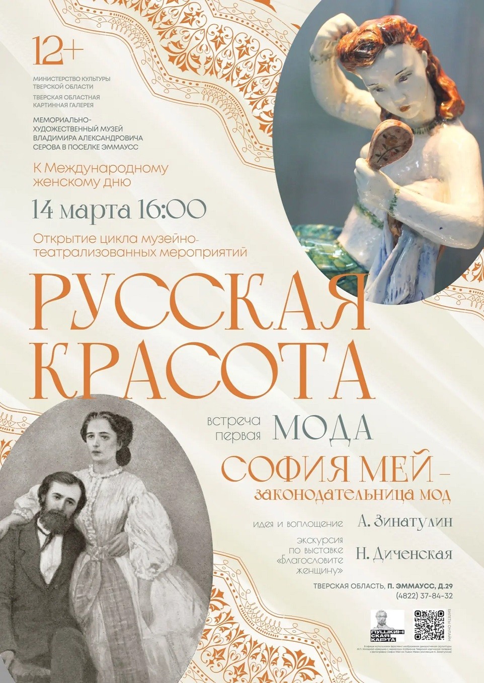 14 марта мемориально-художественный музей Владимира Серова в Эммауссе приглашает на открытие цикла музейно-театрализованных мероприятий "Русская красота" (12+). Первая встреча будет посвящена издательнице и самой элегантной женщине середины XIX столетия, главному редактору журнала "Модный магазин" Софии Григорьевне Мей. Гости узнают, как она сделала свой журнал одним из самых успешных изданий того времени, а сама стала образцом того, как русские дамы "должны быть одеты и загримированы".