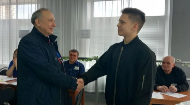А Герман Кичатов лично поздравил студента Григория Лащенко с первым голосованием на выборах.