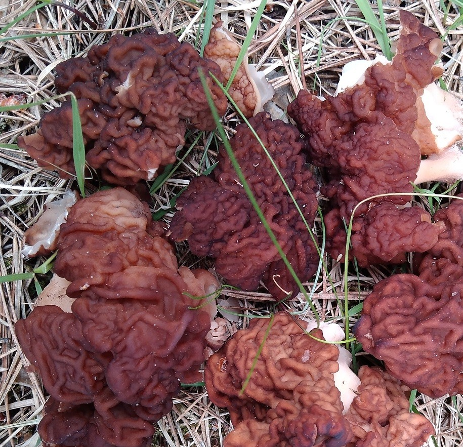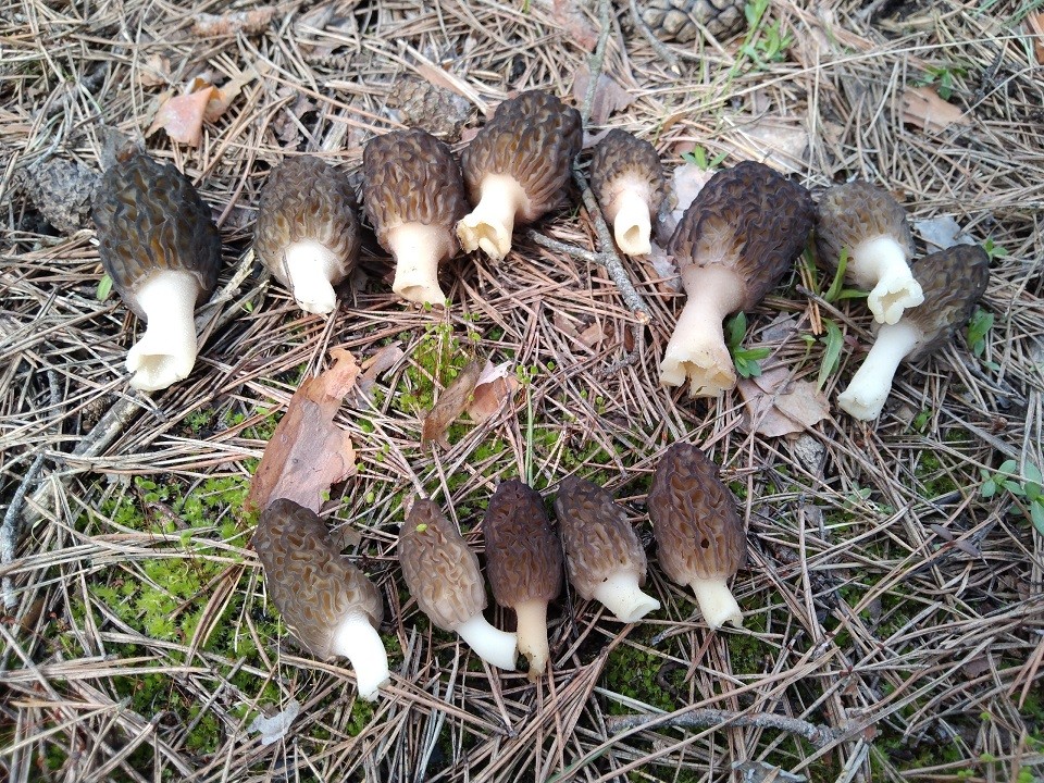 Два вида строчков часто растут рядом, где есть и сосна и береза.