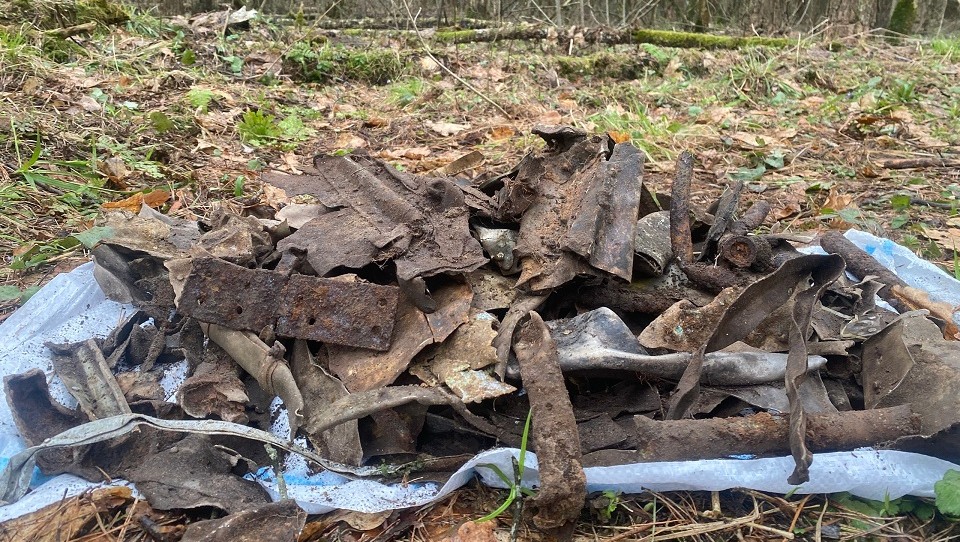 Дальнейшее исследования леса и находки металлических частей помогли понять поисковикам, что здесь упал советский самолет ДБ-3 (дальний бомбардировщик)