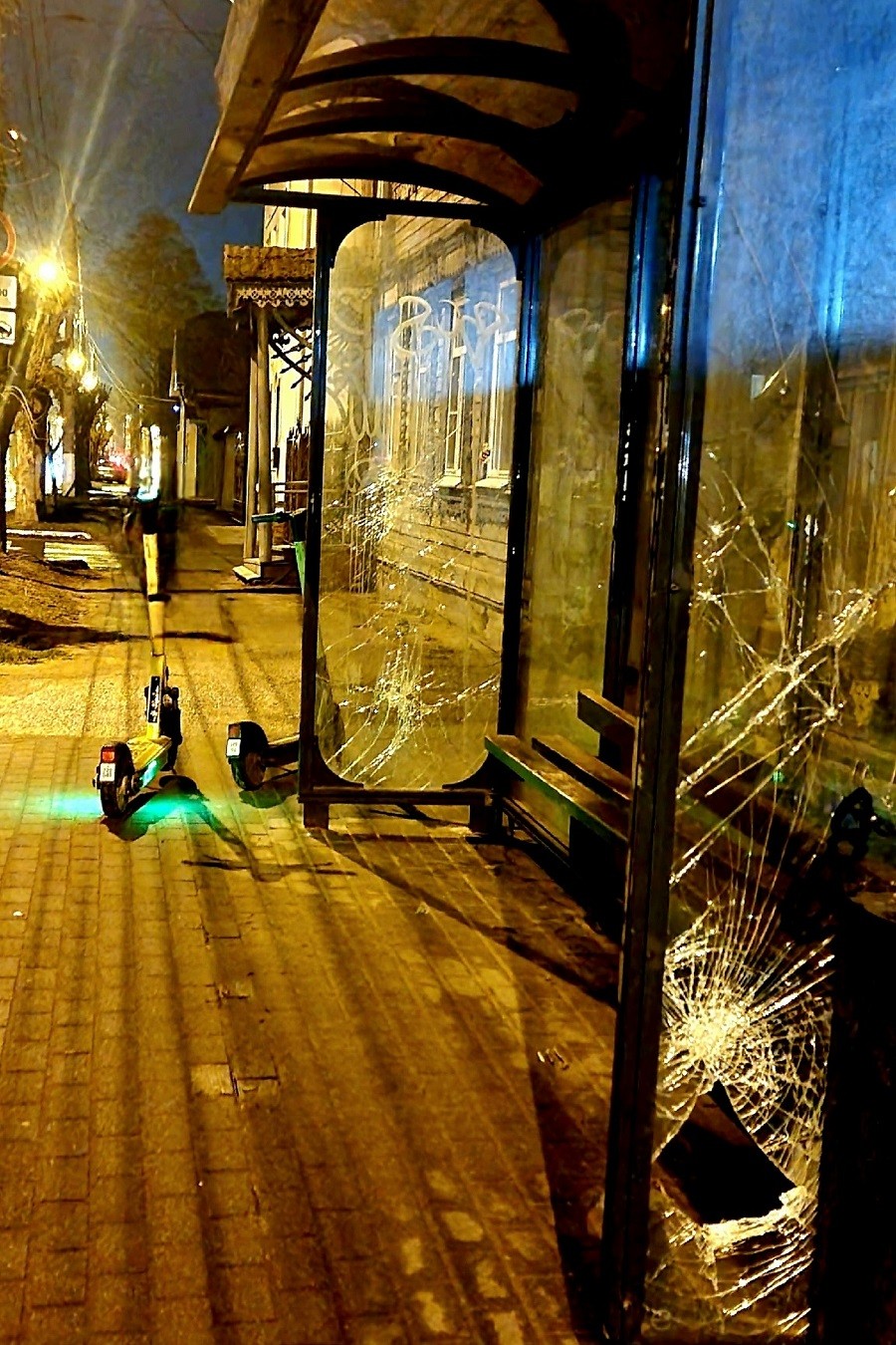 В центре Твери неизвестные разбили очередную автобусную остановку. Фото прислали в сообщество ТИА.