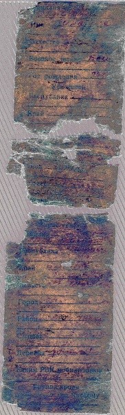 Сейчас техника шагнула вперёд, и уже не нужно стучаться с двери к криминалистам. Медальоны читаются практически дома. Существует линейка современных сканеров, способных в высоком разрешении "просветить" документ, а с полученным файлом уже можно работать в графических редакторах. Сканеров этих у поисковиков не так много, ввиду немалой на них цены, но один, вот именно у нас, в Твери, всё же есть. И вот, когда было решено пару лет назад провести инвентаризацию архива ВПЦ "Подвиг", было обнаружено более 110 бланков и записок из медальонов, которые в своё время невозможно было прочесть. Узнав о первых результатах, присоединились коллеги из других областных организаций, потом передали папки с архивами следующие отряды. Итого количество источников приблизилось к двум сотням. И большая часть из них была прочитана.